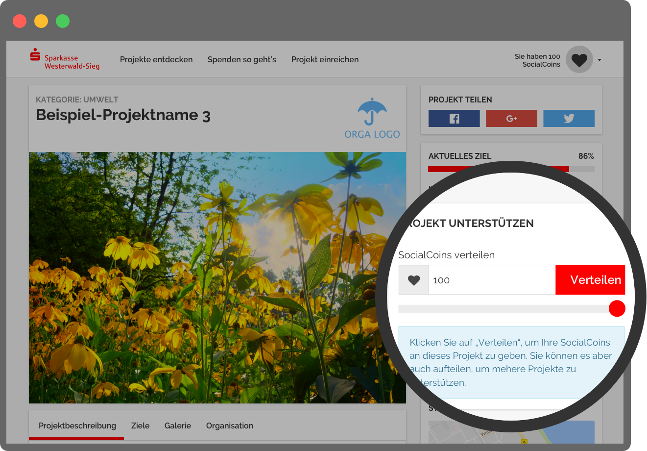 Entscheiden Sie in wenigen Schritten, welcher Verein unterstützt werden soll: